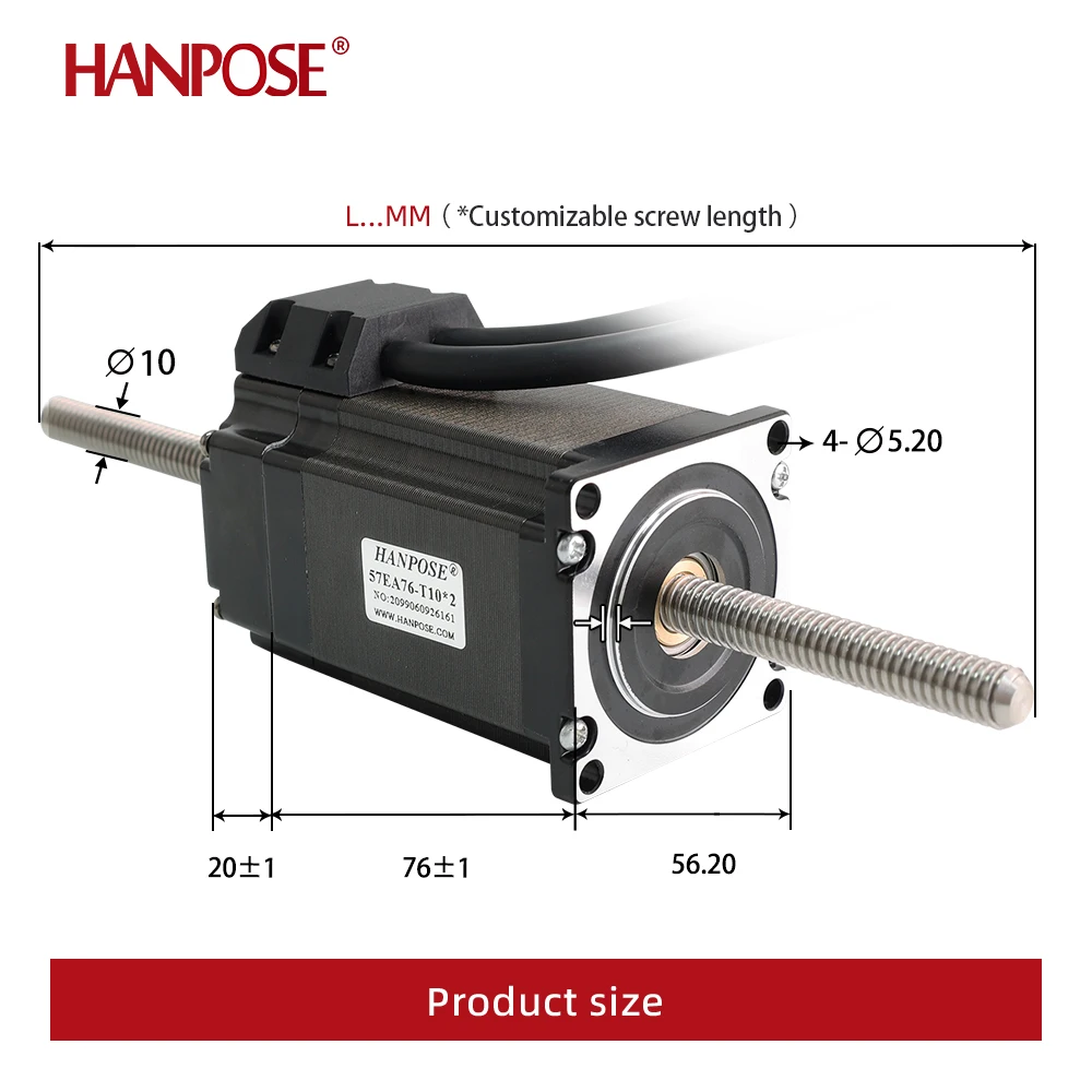 Hanpose 57EA76-T10*2 200mm 2,2 N.M Nema 23 Stapmotor 24v Lineêre Motor vir 3D-Printer Monitor Geslote Lus deur Skroefmotor
