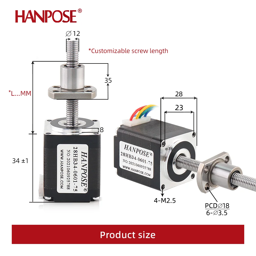 28-steppersmotor lineær 28HB40-28HB50-SFU0601 L50-300 mm kugleskruemotor Nema11 til 3D-printertilbehør