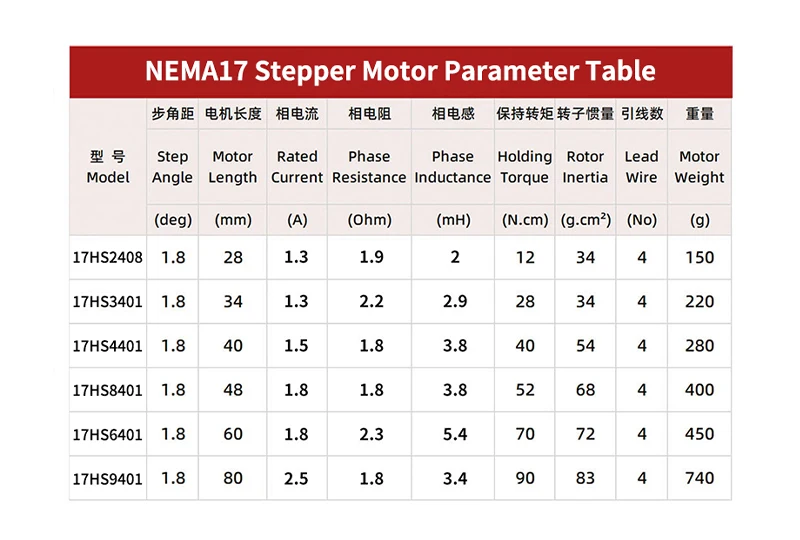 Moteur pas à pas NEMA17, angle de pas de 1,8 degré, modèle 17HS4401S, longueurs disponibles : 20/23/28/34/40/48/60/80 mm, biphasé, 4 fils, 12 V, pour machine de gravure CNC, moteur pas à pas 42