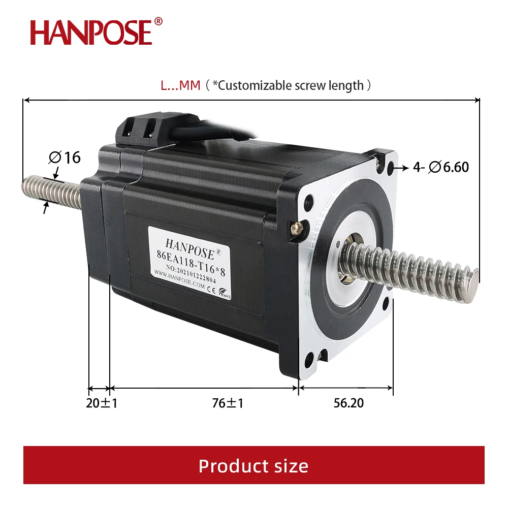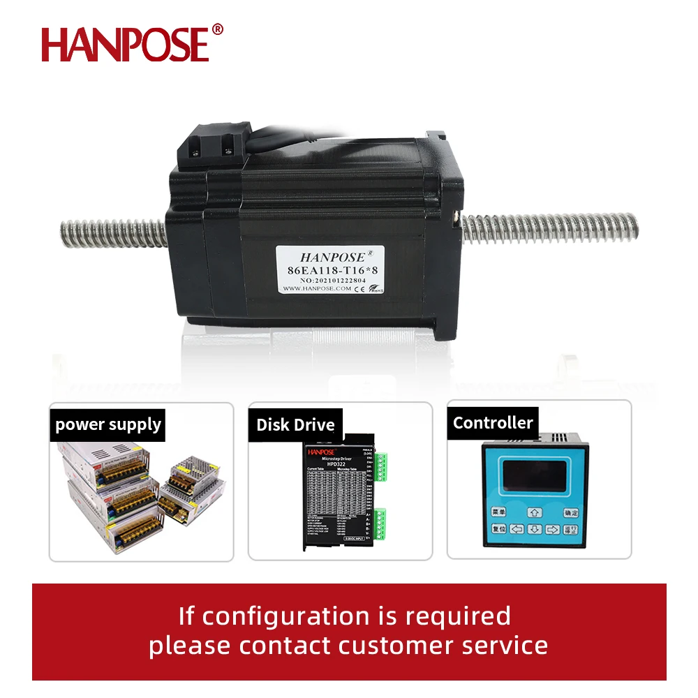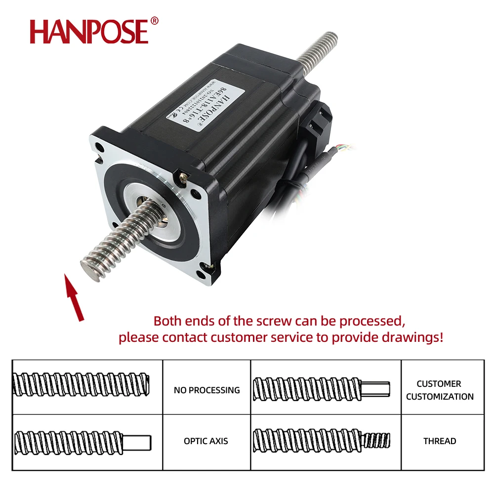 Moteur pas à pas Hanpose 300 mm 86EA118-T16*8 8 N.m Couple élevé 6,0 A pour machine de gravure CNC Moteur à boucle fermée Nema 34 avec vis de transmission