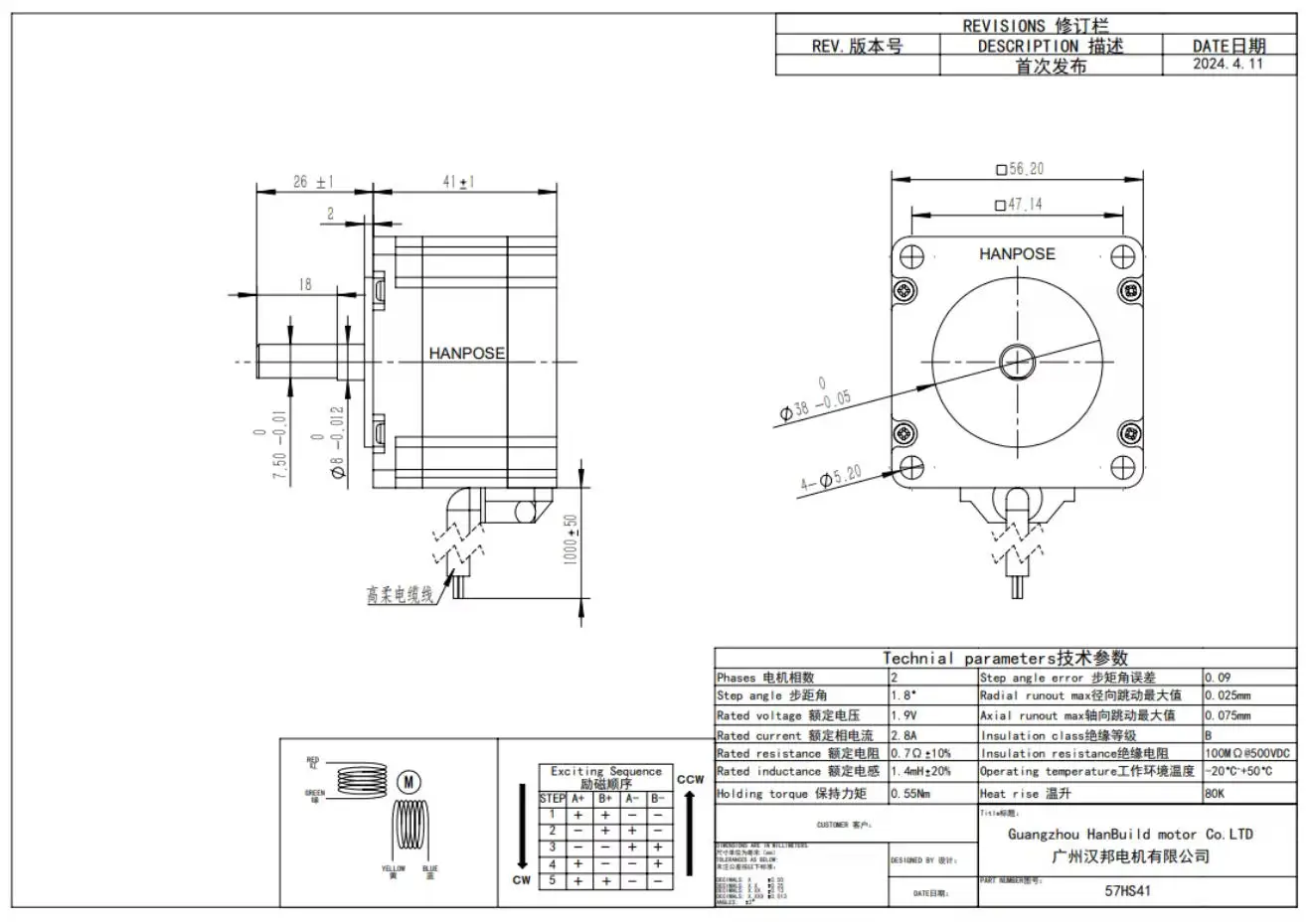 Motore passo-passo HANPOSE Nema23 per macchina da cucire, modello 57HS56, corrente nominale 2,8 A, coppia 1,26 N·m, angolo di passo 0,9 gradi, modello 23HS5628, lunghezze 41/51/56/76/83/100/112 mm, per fresatrici CNC, motore passo-passo