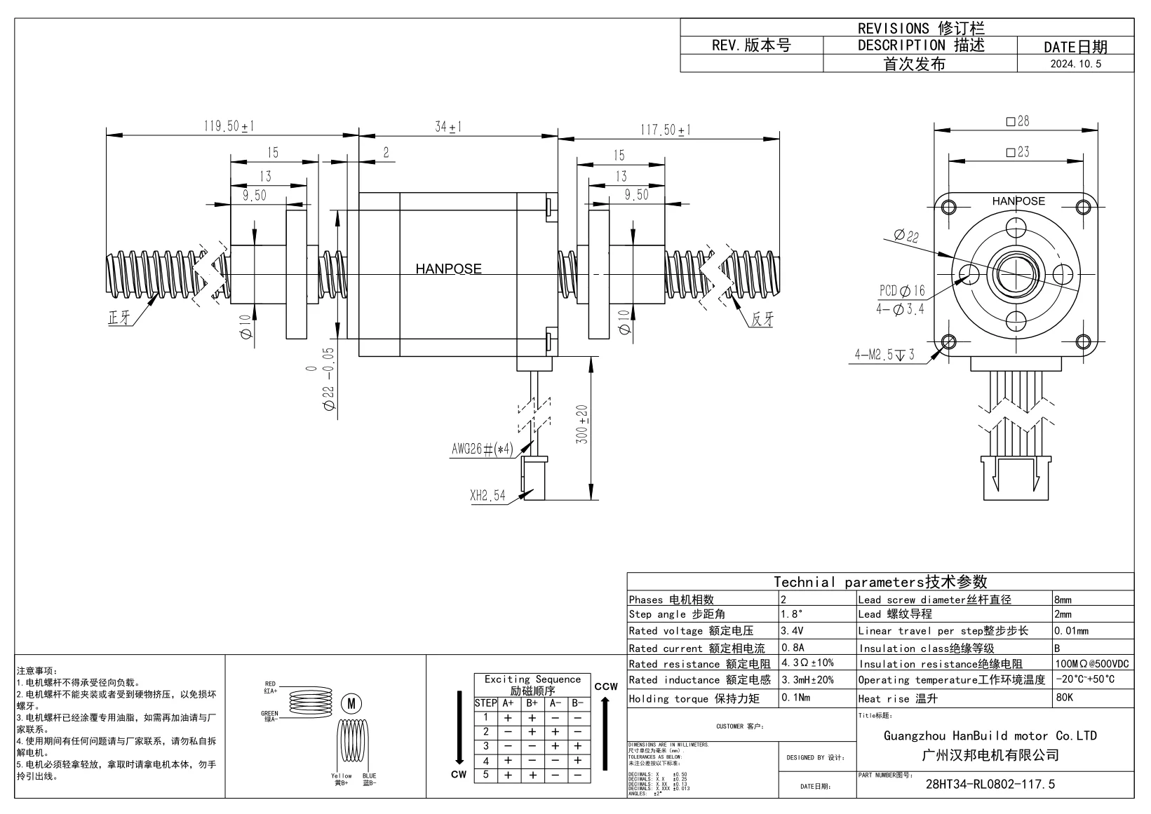 HANPOSE motore a vite passo-passo Nema11 più venduto 28ht34 28ht40 28ht50 28ht28-Rl5 * 2/4/8 50-300 mm motore a vite