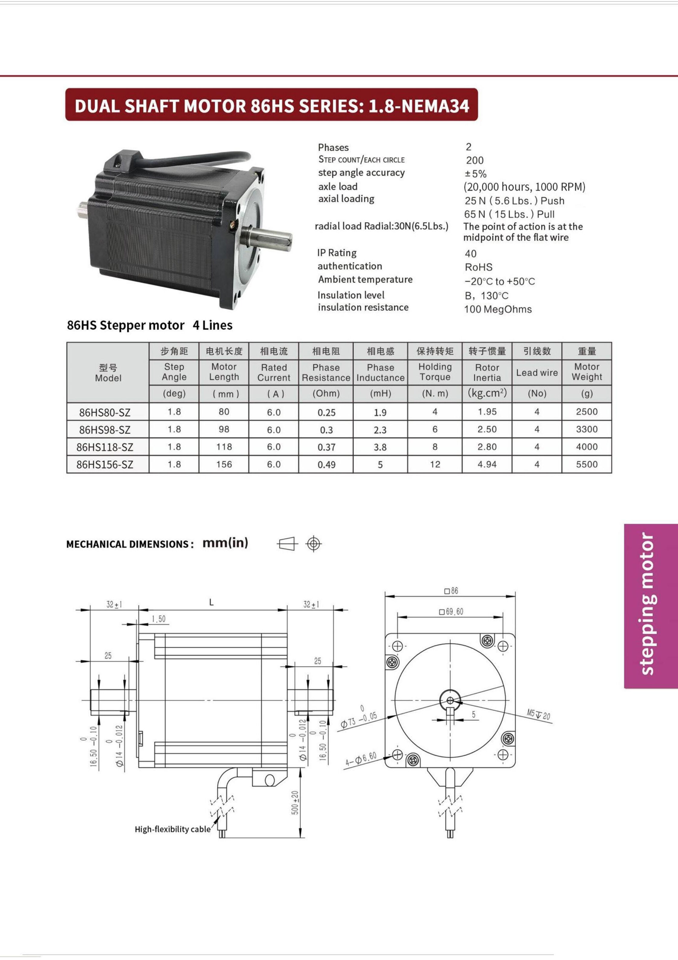 ဟန်ပိုးစ် နီမာ၃၄ အတိကျမှုမြင့်မားပြီး အားကောင်းသော ၈၆ စတက်ပါမော်တာ ၃၄HS8040 /၉၈/၁၁၈/၁၅၆-SZ ၁၂.၀n.m နှစ်ချောင်း မော်တာ