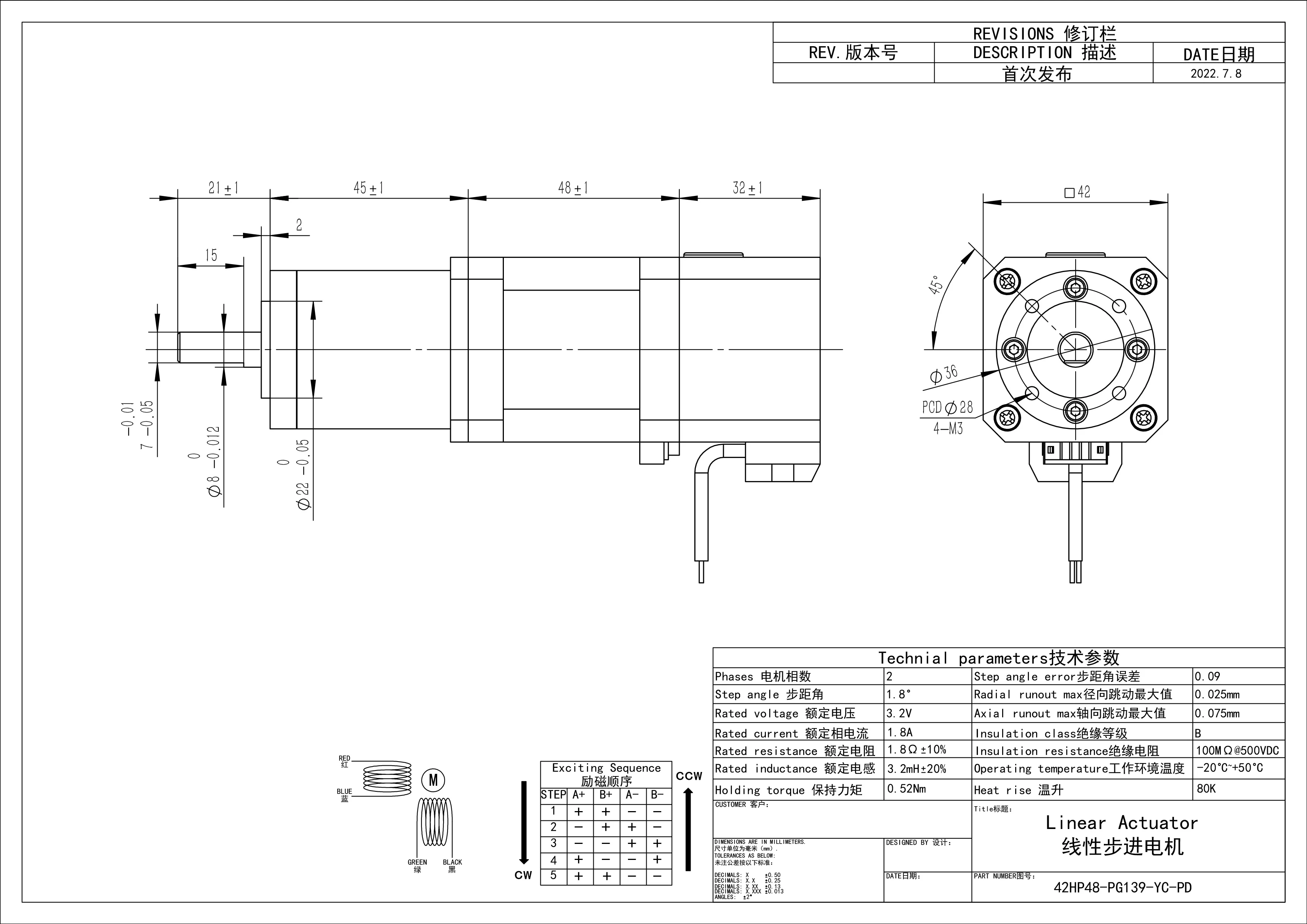 1.8A 42 ခြေလှမ်းမော်တာ 42HP48/34/40/48/60-PG-YC-PD စတေးရီယံမေဂျက် ဒီစီမော်တာ လျော့ချမော်တာ (ဘရိတ်ပါသော) Nema17