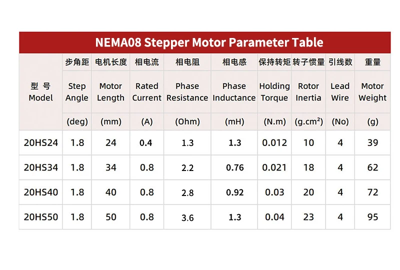 ဟန်ပိုးစ် NEMA8 ဒွိလက်မှုန်းမော်တာ 20HS24/34/40/50-SZ 0.8A 0.04N.m လီနီယာမော်တာများ (အပြင်ပိုင်းသုံး) အလှအပပစ္စည်းများအတွက် မိုင်ခရိုမော်တာ