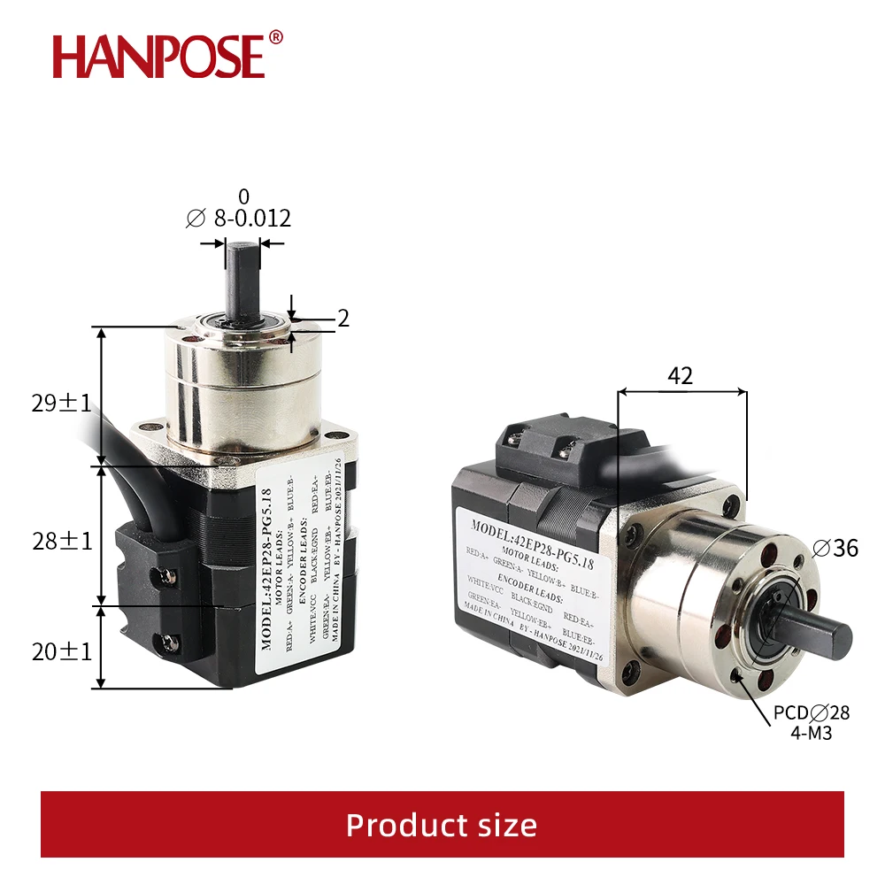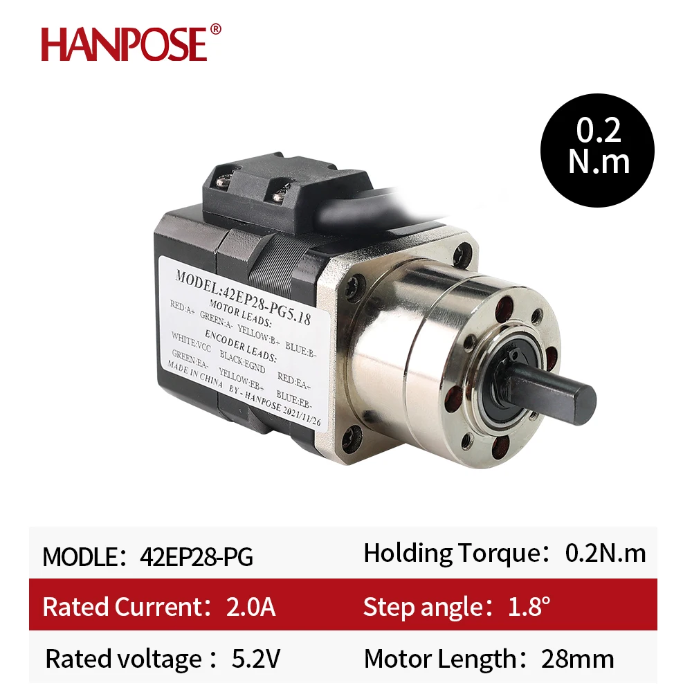 Hanpose အမြင့်အတန်းသော တိကျမှုရှိ Nema17 ပိတ်လုပ်ဆောင်ချက် စတီပါမော်တာ 42EP28/34/40/48/60-PG-CL42 (လျှော့ချမှုအချိုး ၃.၇၁) ဂရီးဘောက်စ် မော်တာ