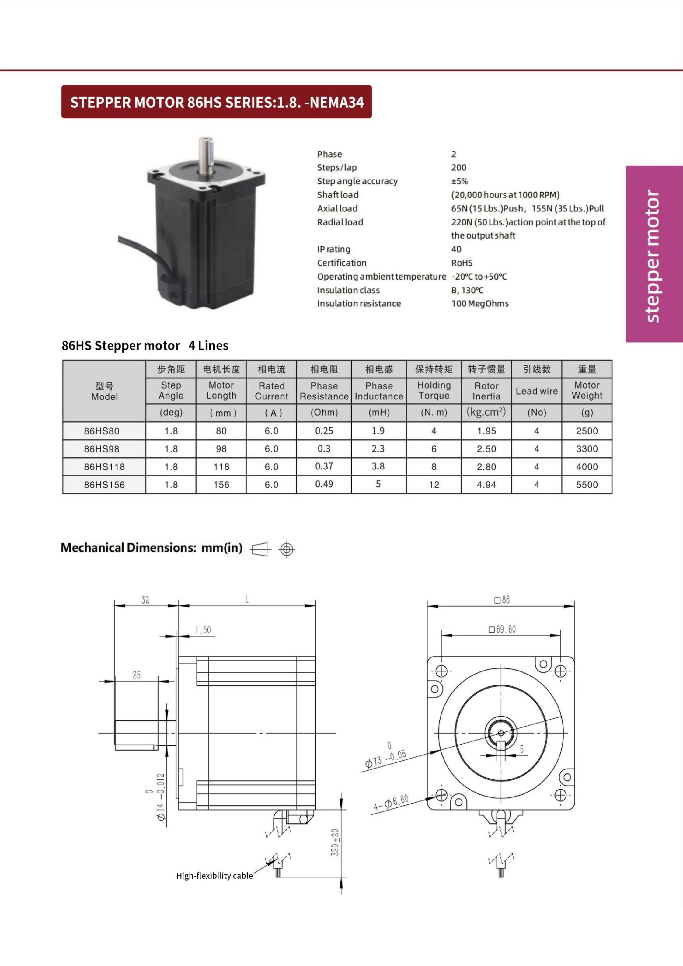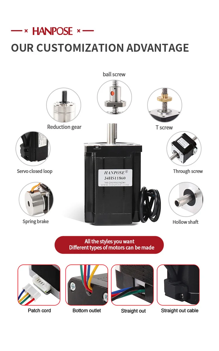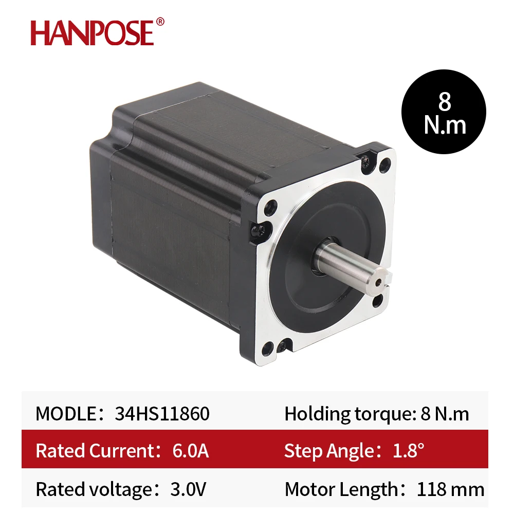 ဟန်ပိုးစ် Nema34 86*86*118မီမီ စတက်ပင်းမော်တာ 34HS8040/9850/11860/15660 CNC အက်ထ်ဂရေးဗင်းစက်အတွက် အမြင့်ဆုံးတော်ကျူးပါသည်။ Nema 34 စတက်ပင်းမော်တာ