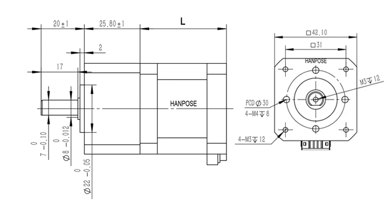 HANPOSE 42 Kwadratowa przekładnia redukcyjna Silnik krokowy 42HP40-HN10 1,5A 1,8° Silnik redukcyjny