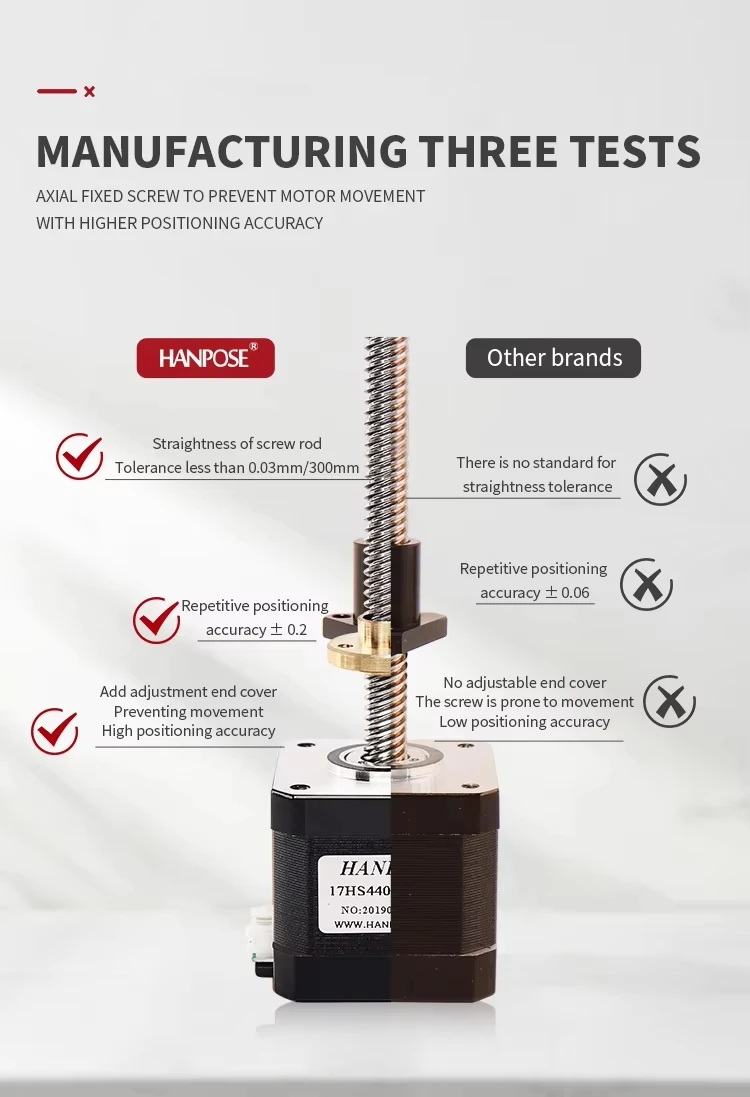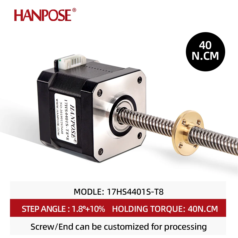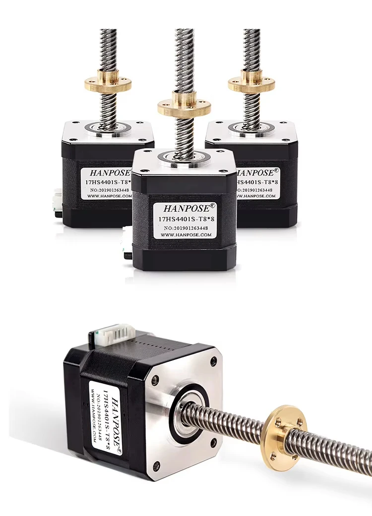 HANPOSE Wysokiej jakości silnik krokowy o dużym momencie obrotowym 17hs4401s-T8 * 8-100 mm-500 mm Silnik krokowy Nema 17 z gwintem