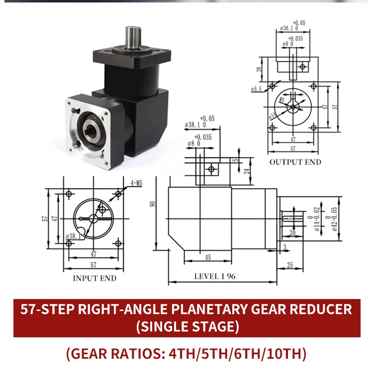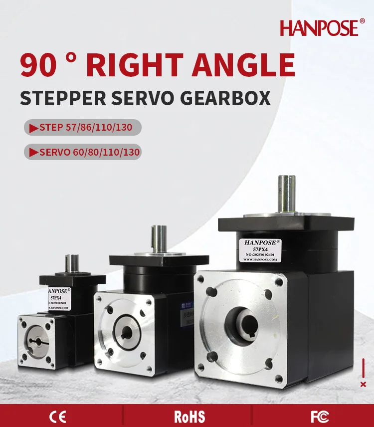 Hanpose Bestsellerowy serwo silnik krokowy z przekładnią pod kątem 90° 57PX4 Sprawność 90% Długość silnika 103 mm Serwo silnik krokowy