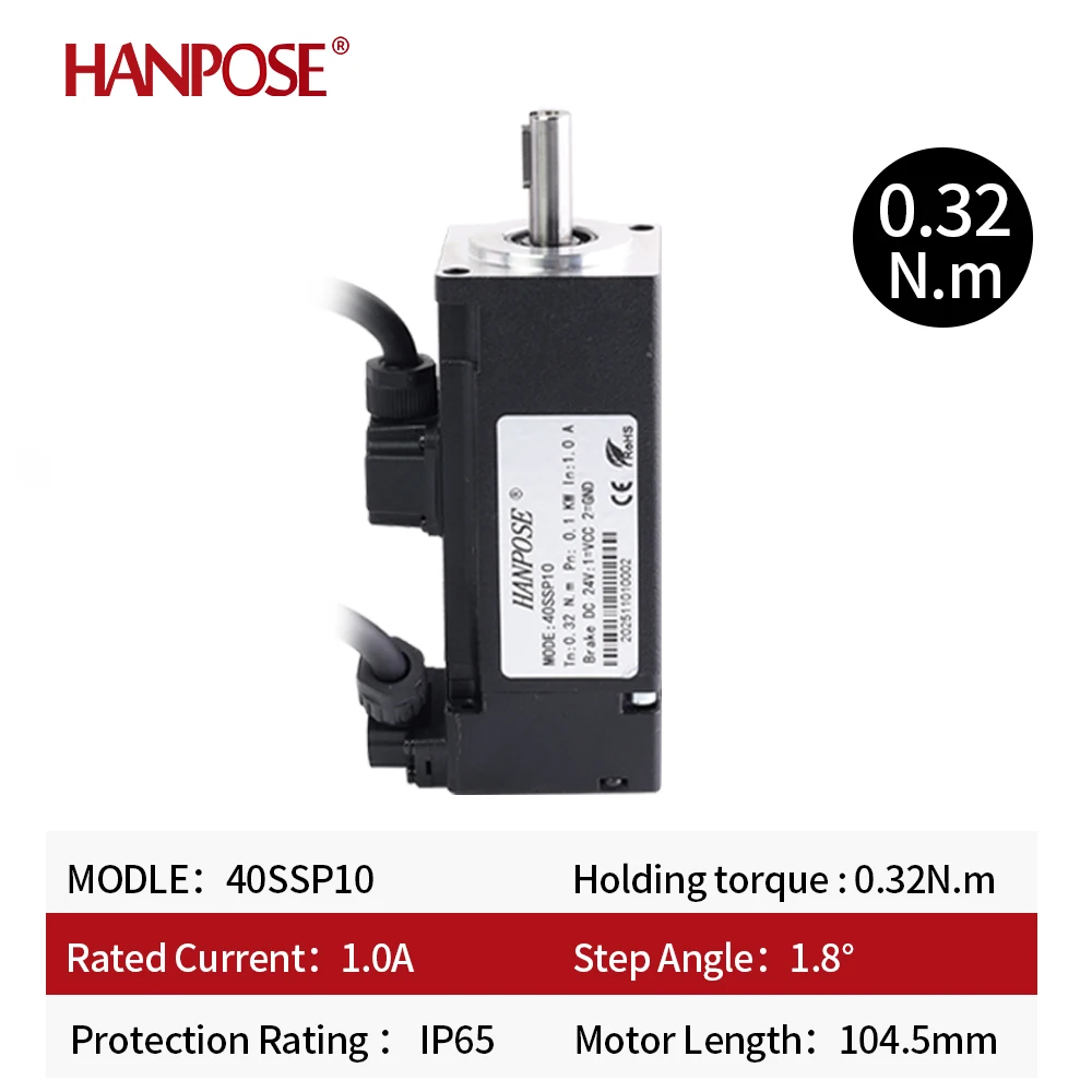 HANPOSE Servo Brake Motor 40SSP10-ASD210-100w 1A 1.8 ° Motor Length 104.5mm Ip65 Servo Motor 40SSP05-ASD210-50w