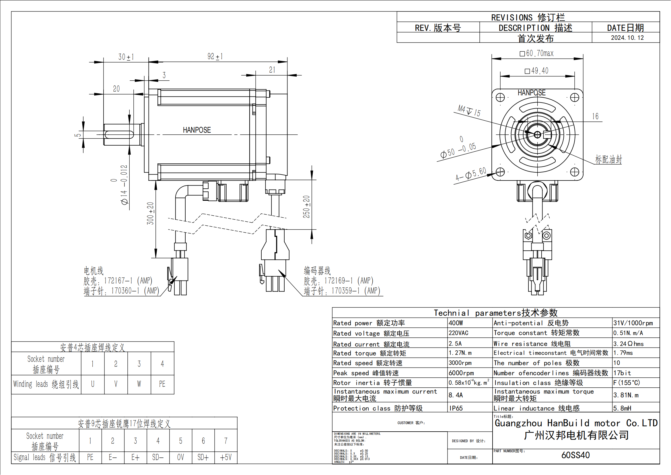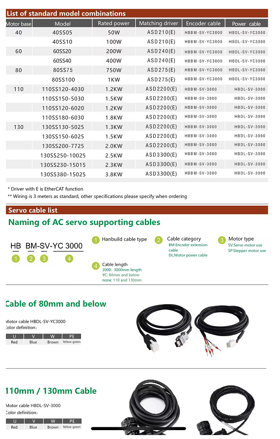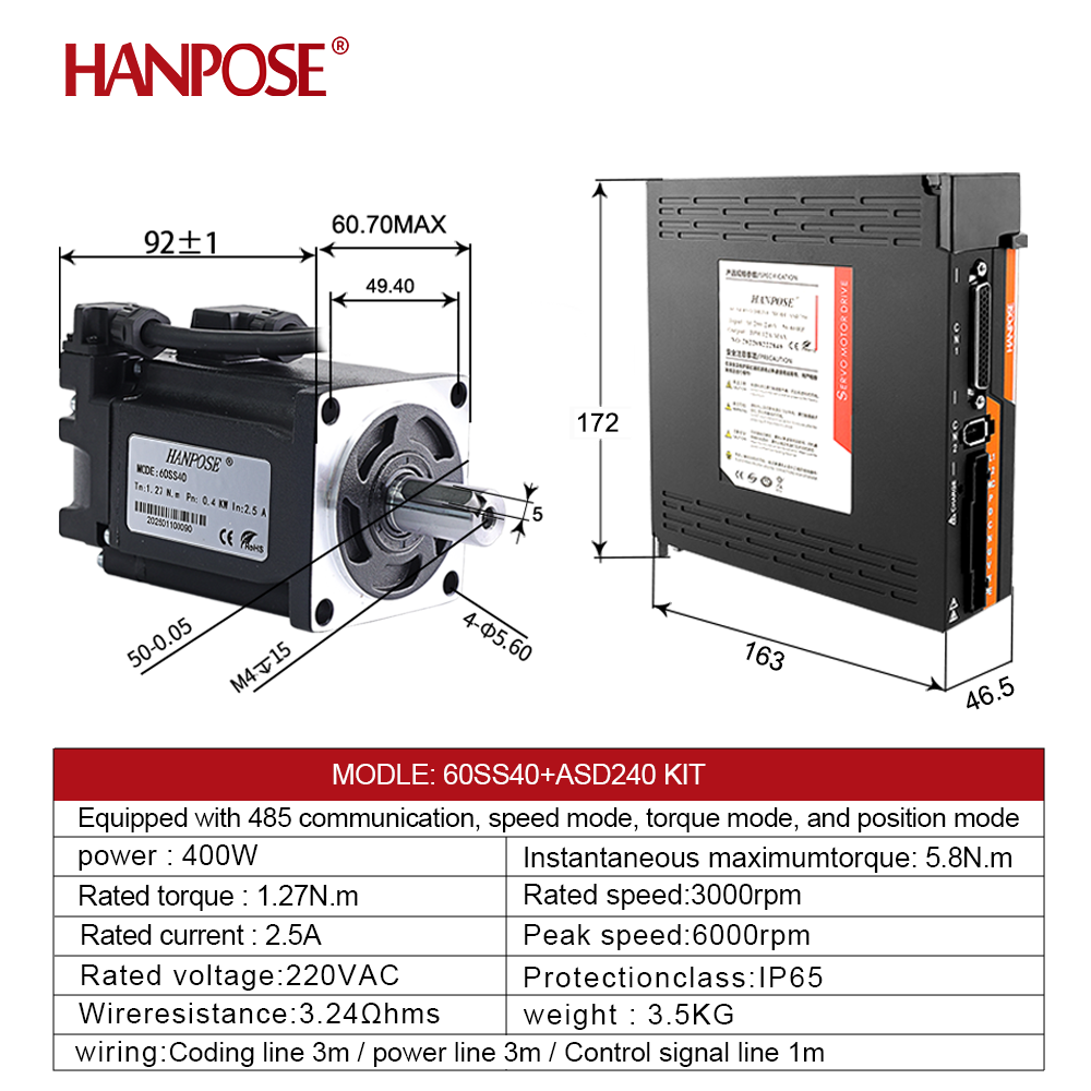 HANPOSE High Performance 60 Servomotorsats 60SS40 0,4 kW ASD240 220 V 1,3 N·m 2,5 A 3000–6000 rpm 400 W Ac Servomotor Driv