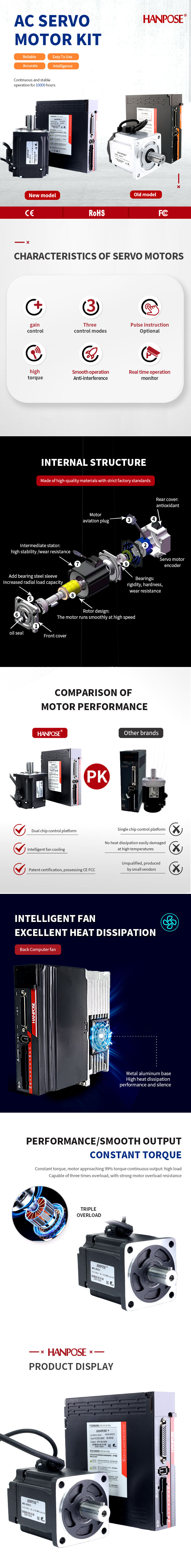 Användare uppskattar den enkla installationsprocessen och kompatibiliteten med vanliga styrningssystem, vilket gör integrering av denna servomotorsats i befintliga system enkel och problemfri. HANPOSE säkerställer kvalitet och kundsupport, så du kan lita på att produkten uppfyller branschens standarder